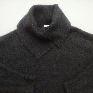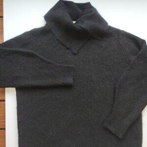 Split Cowl Neck Black Alpaca Wool Blend Sweater