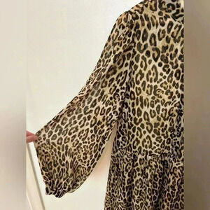 H&M Animal Print Sheer Chiffon Ballon sleeve Flowy button Down mini Dress S/M