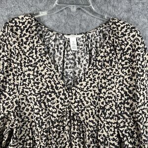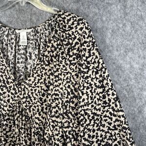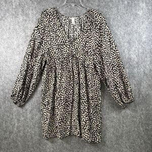 H&M Animal Print Shift Dress Long Sleeve Size Small Unlined Pullover Flowy Boho
