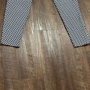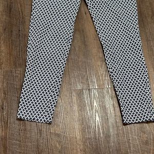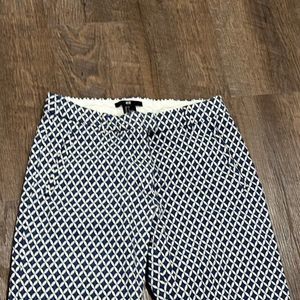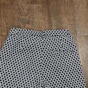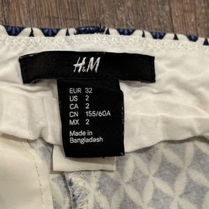H&M Ankle Pants Women's Size 2 Diamond Geometric Trousers Print Blue White
