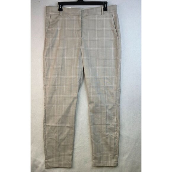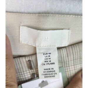 H&M Ankle-Length Plaid Slacks Size 14 Beige Checkered Preppy Academia New