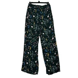 H&M Anna Glover Green Floral Wide Leg Pants Size 10