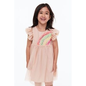 H&M Appliquéd Tulle Dress In Powder pink/rainbow. It’s a size 6, but runs more like a 5 in my opinion. Please check measurements. It has no stretch. ⚠️ the size listed for is just a suggestion. New with tags.