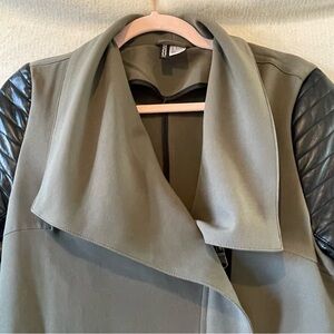 H&M Army Green Trench Coat Faux Leather Sleeve Asymmetric Zip Moto Jacket Size 6