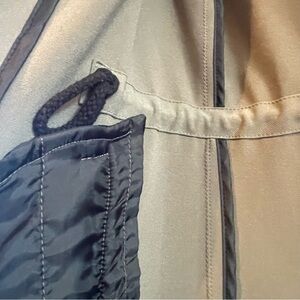 This H&M trench coat in army green is a stylish addition to any wardrobe. The jacket features a mid-length, long sleeve design with an asymmetric zip closure and drawstring detailing. It is made from polyester and has a regular fit, making it suitable for a range of body types. The jacket also comes with pockets and a collared neckline, making it a versatile piece for any season. Whether you're looking to channel your inner designer, army officer, biker or preppy, this jacket is the perfect choice.