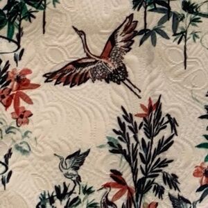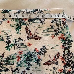 Pretty Asian crane and flower print skirt by H&M. Waist 28", no stretch, zipper at the back. Length 19". Lined. In very good condition.