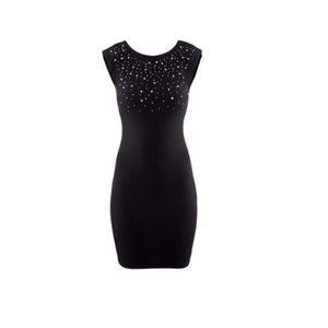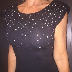 H&M BLACK BODYCON RHINESTONE DRESS LBD NYE SPARKLE SZ S