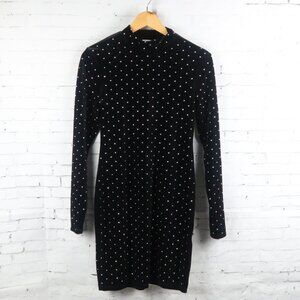 H&M BLACK VELVET RHINESTONE STUDDED LONG SLEEVE HIGH NECK DRESS SIZE SMALL