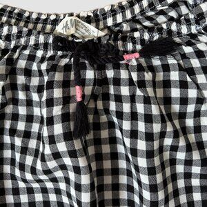 H&M BLACK & WHITE CHECKERED PEASANT STYLE PULLOVER BLOUSE GIRLS SIZE 12-13