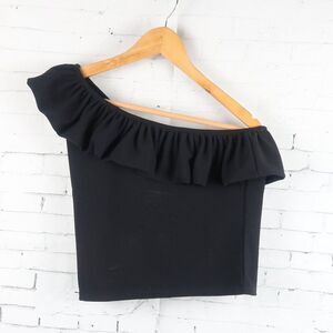 BLACK ONE SHOULDER RUFFLE CROPPED TOP SIZE MEDIUM BY H&M PRE OWNED NO FLAWS