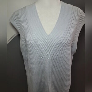 H&M Baby Blue Oversized Ribbed Sweater Vest Womens Size Med Cotton Blend