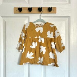 H&M Baby Girl Hooded Jacket Dress Set Green Polka Dot Yellow Bird 6-9 mo