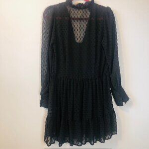 H&M Babydoll Dress SIZE 2 Black Sheer Swiss Dot Ruffle Collar Tie Neck Twee