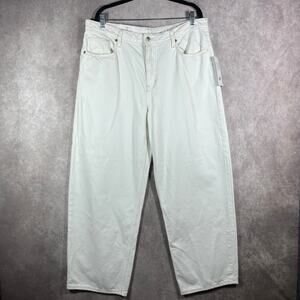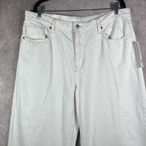 H&M Baggy Jeans Womens Size 16 White Denim High Waisted Loose Fit Straight NEW