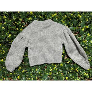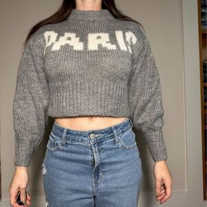 H&M Balloon Sleeve Gray PARIS Cropped Crewneck Sweater Size XS