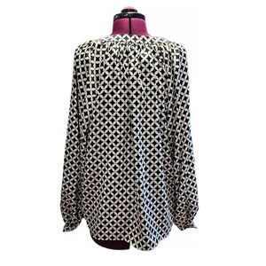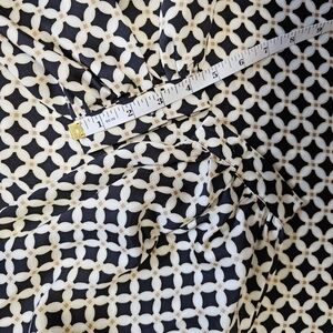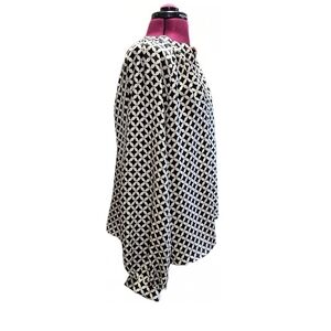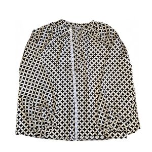 flowy, breathable, baggy, loose, preppy, classic, fun, chic, flirty, fall, autumn, winter, spring, summer, workwear, business casual, career, raglan, balloon, lightweight, gold, yellow, black, cream, ivory, off white, geometric, lightweight