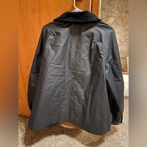 Excellent condition only worn a few times. Outside is a raincoat/waterproof material. Gold hardware.