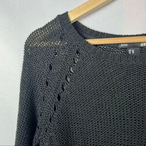 H&M Basic Black Open Knit Round Neck Sweater XS