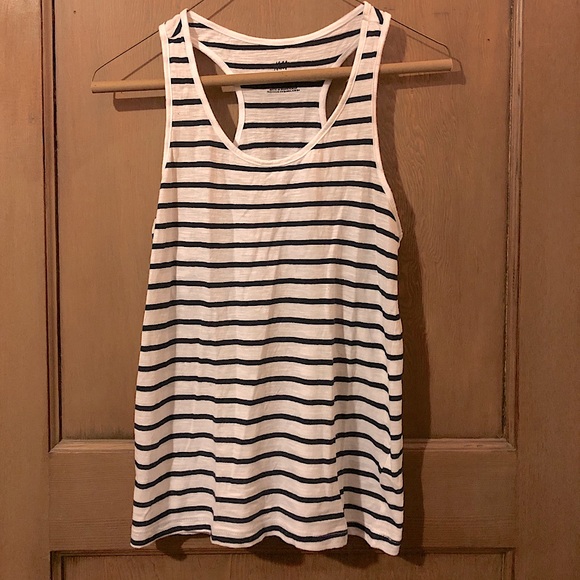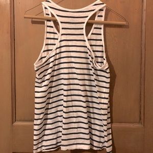 Barely Worn, Basic, Racerback tank. - black and white striped, cotton, semi sheer.