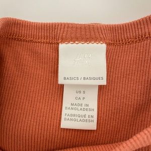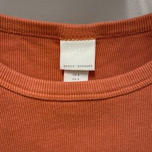 Super cute light burnt orange ribbed basic tee from H&M. Has a more fitted look. Made from organic cotton stretch jersey.
