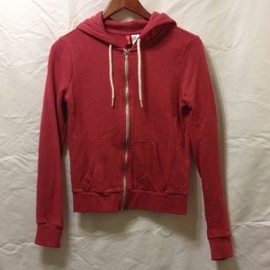 @06purnic I know it looks kinda red but it's definitely a little bit more on the darker side of a salmon pink color. If you look at the top part of the sweater where the hood begins, that's pretty much what the color looks like in person. Not too pink though, that's why I bought it, I used to pair with a green military jacket.