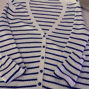 Elegant striped lightweight cardigan with v-neck, button-down front. Multi use functional & Perfect for layering.