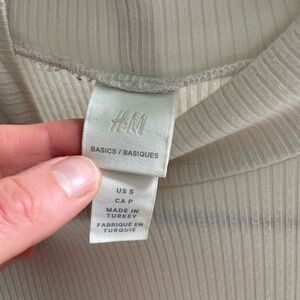 Set of three H&M tops - 1) black scoopneck tee with frocket size small 2) white and blue striped button down blouse size 4 and 3) white long sleeve turtleneck size small. All good condition!