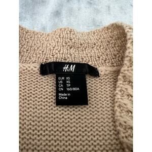 H&M Beige Knit Sweater Vest Faux Fur Trim Open Front Size XS Missing Belt