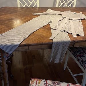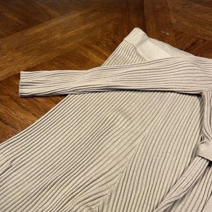 Stylish ribbed sweater with matching belt. Soft and comfortable fabric. Perfect for casual wear.