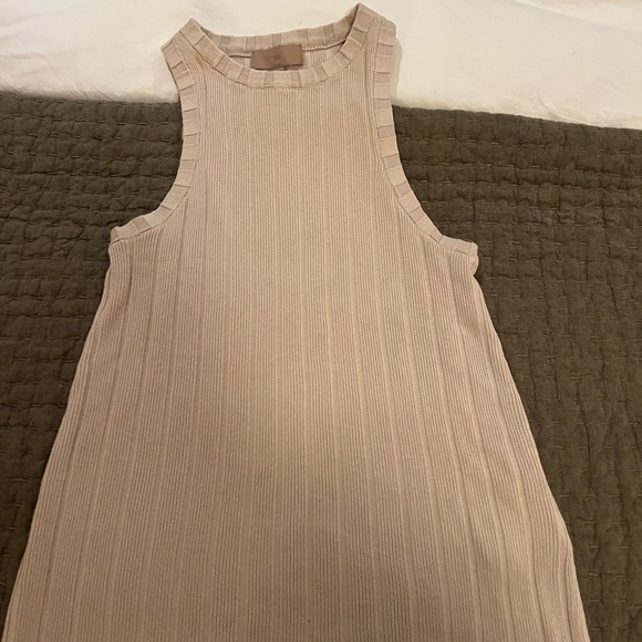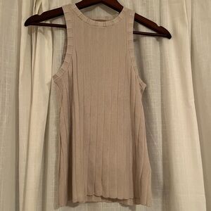 Chic ribbed tank top by H&M. Soft beige color. Ideal for layering or wearing alone. Purchased for £30 pounds in the Oxford Circus H&M store in London, only worn a few times.