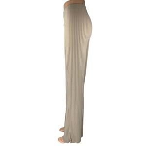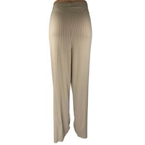 H&M Beige Tan Khaki High Waisted Ribbed Knit Pull On Straight Trousers Pants XL