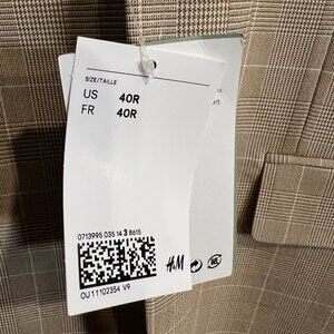 H&M Beige Windowpane Suit Size 40R Skinny Fit