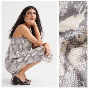 H&M Beige/Snakeskin Patterned Satin Slip-Style Dress