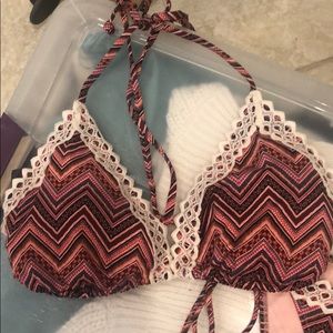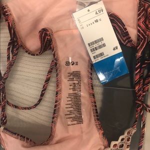H&M bikini set. Top with crochet detail, size Large. Bottoms new with tags, size 10 (bottoms run super small, I’m normally a 6)