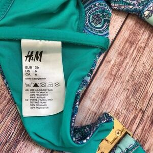 H&M Bandu Bikini Green and blue pattern Size: Top 6, Bottom 4 Used in Good Condition