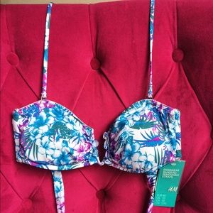 Two piece H&M swimsuit with bandeau top that can be worn strapless. Print top, solid bottom. Top is size 10 and bottom is size 12.
