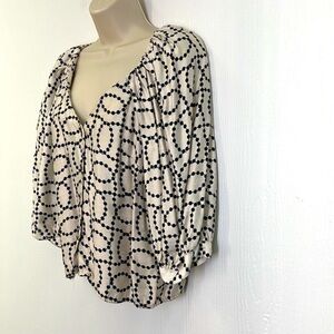 H&M - Black And Ivory Design V Neck Button Down Puff Sleeves Top Size XXS
