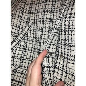 H&M Black And White Plaid Houndstooth Tweed Cropped Jacket Size Small