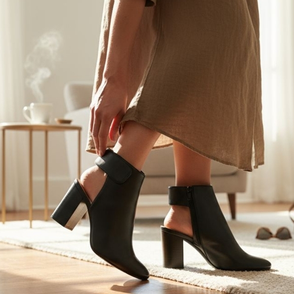 Step out in style with these sleek black ankle boots. Perfect for any occasion, they offer both comfort and elegance.