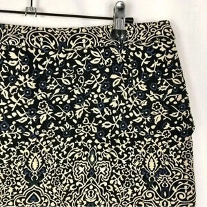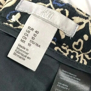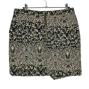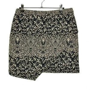 H&M Black & Beige Floral Faux Wrap Woven Mini Skirt 10
