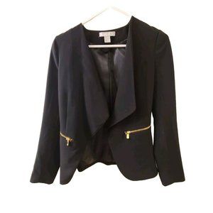 H&M Black Blazer Jacket Gold Zipper Pockets Dress Workwear Size 4