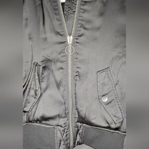 Own the streets in this bold black bomber jacket by H&M. With its clean lines, ribbed trim, and zip-front design, this jacket brings an effortless edge to any look. Lightweight but impactful, it's the perfect layering piece for day-to-night fits.