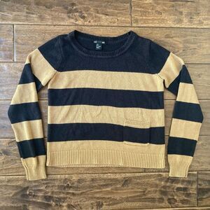 H&M Black Brown Stripe Sweater Women’s Small Cropped Classic Preppy Fall