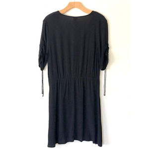 Elegant black dress with button-down front. Features mid-length sleeves with tie details. Still in excellent condition, the dress no longer has tags and has been worn a couple of times!