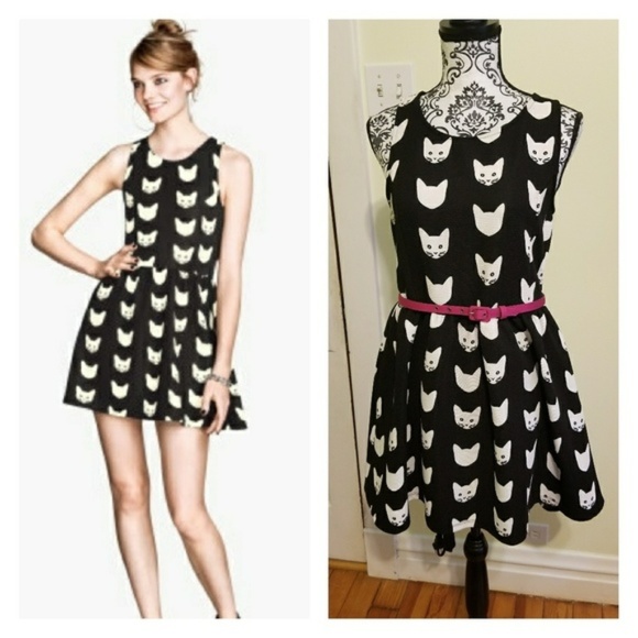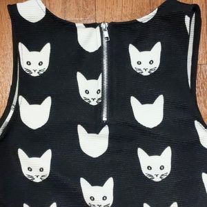 Adorable black skater dress. EUC. Zipper in back, but it's a stretchy material. 98% polyester 2% elastane