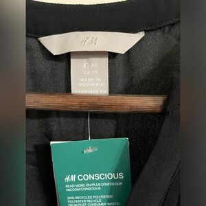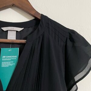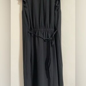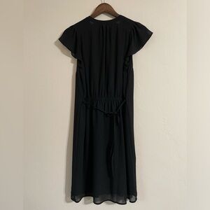 H&M Black Chiffon Dress with Tie Belt and Cap Sleeves and Satin Lining