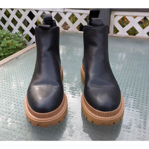 H&M Black Chunky Chelsea Boots Sz 8 Leather Tan Platform Lug Sole Ankle Boot