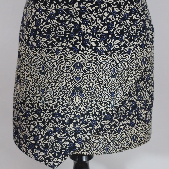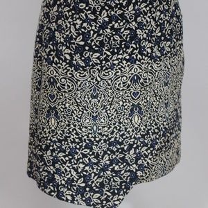 H&M Black, Cream, & Blue Floral Faux Wrap Skirt