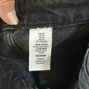 H&M Black Denim Mom Jeans. Button fly. Ultra high waist. 99% cotton, 1% elastane. Size 10