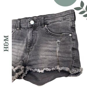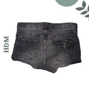 Elevate your casual wardrobe with these edgy black denim shorts from H&M. Featuring a distressed design with strategic fading and raw, frayed hems, these shorts bring effortless style to sunny days. Made from a comfortable cotton blend with a hint of stretch, they offer a flattering, flexible fit perfect for everyday wear. Pair them with your favorite tee or tank for an easy, stylish look.